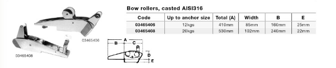 1852, Ankerrulle vipbar AISI 316, til anker <12 kg, 410 mm, 85 mm
