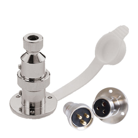 1852, Dækstik 3-polet, 5 Amp, 12V, forkromet messing med pakning og plastlåg