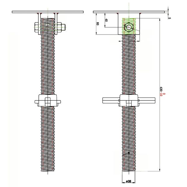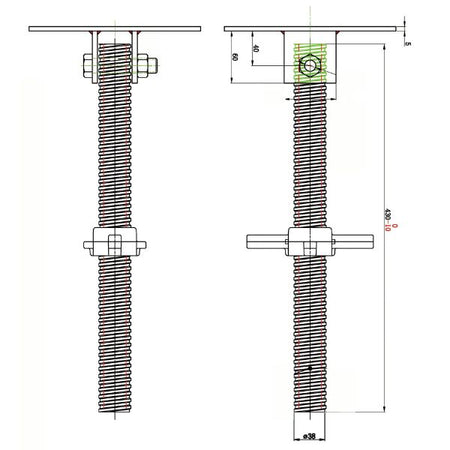 1852, Flad topplade 20x20cm til bådstøtte, inkl. gevindstang 40,0 cm - Ø38mm