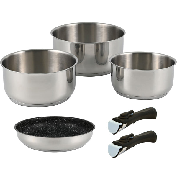 1852, Grydesæt 6 dele med non-stick belægning og aftagelige håndtag, rustfrit stål