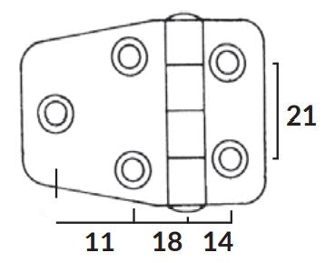 1852, Hængsel RF, 56 x 38 mm, AISI 316