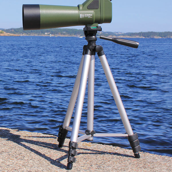 Dette sammenklappelige kikkertstativ i aluminium er den ideelle løsning til dig, der ønsker en let og transportabel støtte til dine udsigtskikkerter. Med en imponerende højde på 1.255 mm og en vægt på blot 0,55 kg, er det nemt at tage med på dine udendørs eventyr.