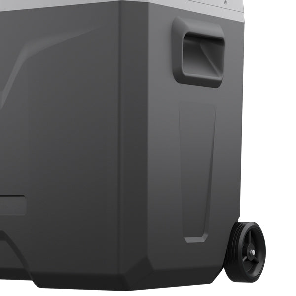 Køleboksen er udstyret med en kraftfuld LG kompressor, der sikrer hurtig nedkøling ned til -20˚C. Den er let at transportere takket være de to hjul og det justerbare håndtag, hvilket gør det nemt at tage den med overalt.