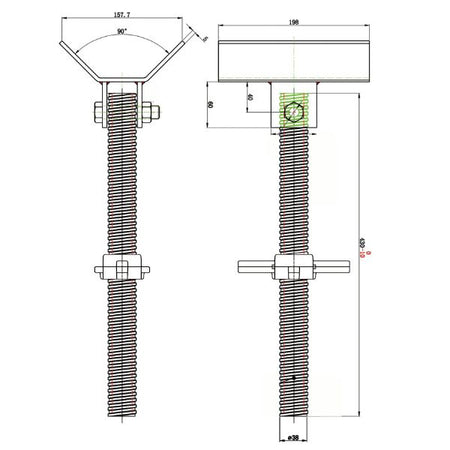 1852, Kurvet topplade til bådstøtte, inkl. gevindstang, 40,0 cm