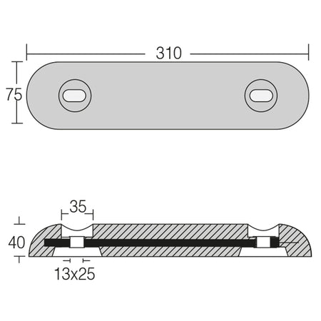 1852, Zinkanode til motorbåd, 4,0 kg, 75 mm x 40 mm x 310 mm