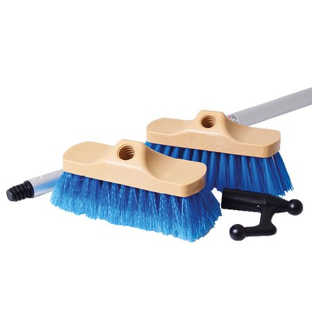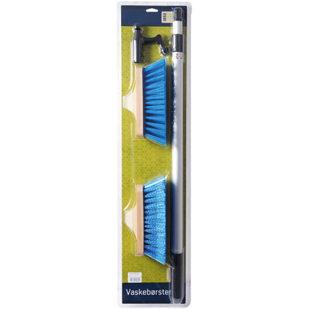 Sættet indeholder både en blød og en hård vaskebørste, så du kan tilpasse rengøringen til forskellige overflader. Den medfølgende bådhage gør det nemt at nå de svære steder, mens det teleskopiske skaft i aluminium giver dig mulighed for at justere længden fra 1,2 til 2,0 meter for optimal komfort og rækkevidde.