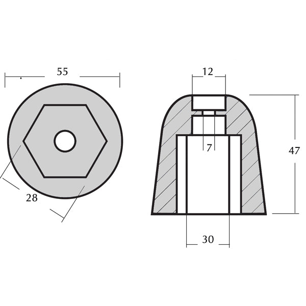 1852, Zinkanode til Vetus Bovpropel KGF 125 & 160, Højde 47 mm, Ø 55 mm