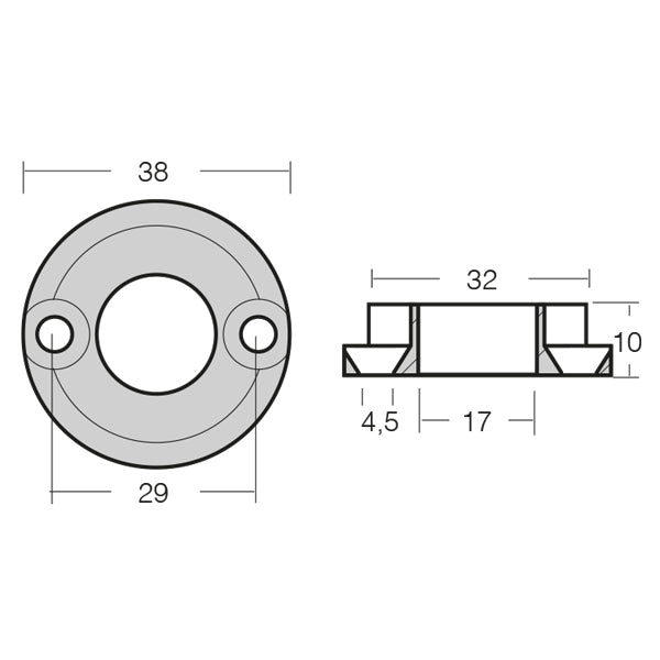1852, Zinkanode til Vetus Bovpropel KGF 25, 29 mm, 10 mm, Ø 38 mm