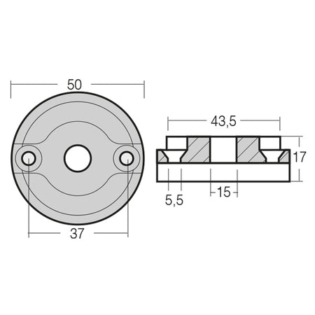 1852, Zinkanode til Vetus bovpropel KGF 35, 37 mm hulafstand, 50 mm Ø, 17 mm højde