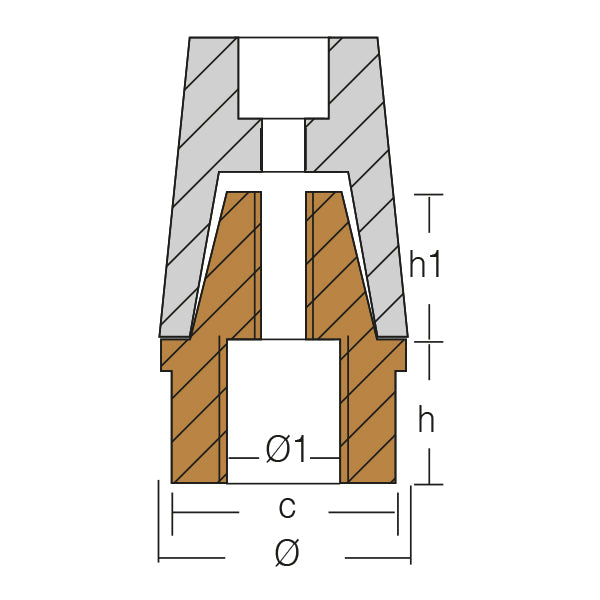 1852, Zinkanode m/messing møtrik 35mm (tidl. 1141475) Ø50mm