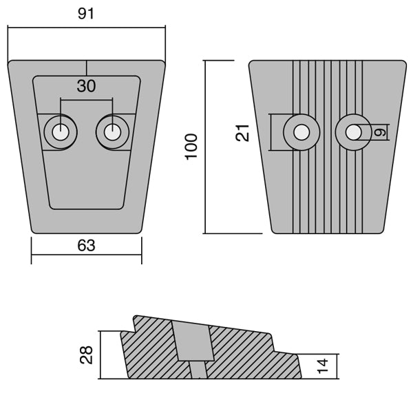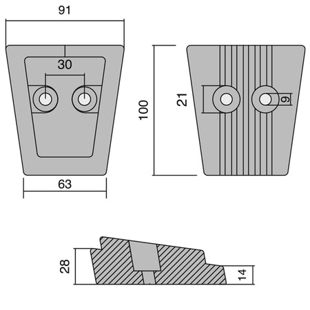 - Dimensioner: 100 x 91/63 mm