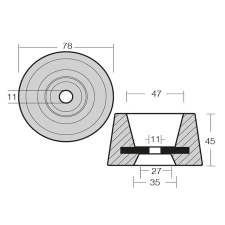 1852, Zinkring til Vetus, Ø 78 mm, Højde 45 mm
