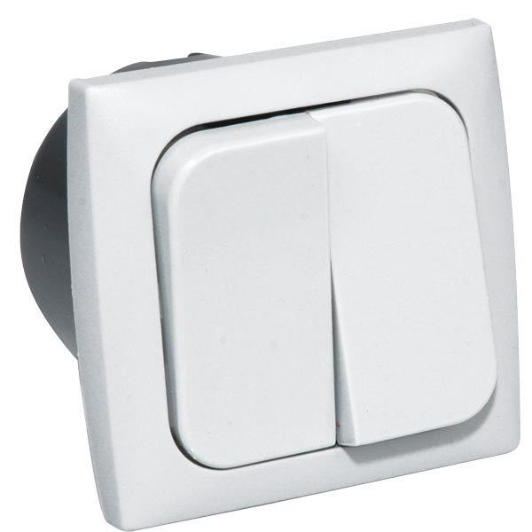 Dobbelt Afbryder til Indbygning, Hvid, 220V, 60 mm x 54 mm x 65 mm, Indbygningsmål: 45 mm, Ø 50 mm