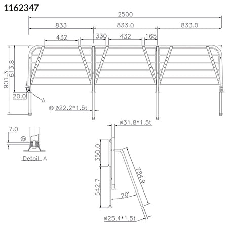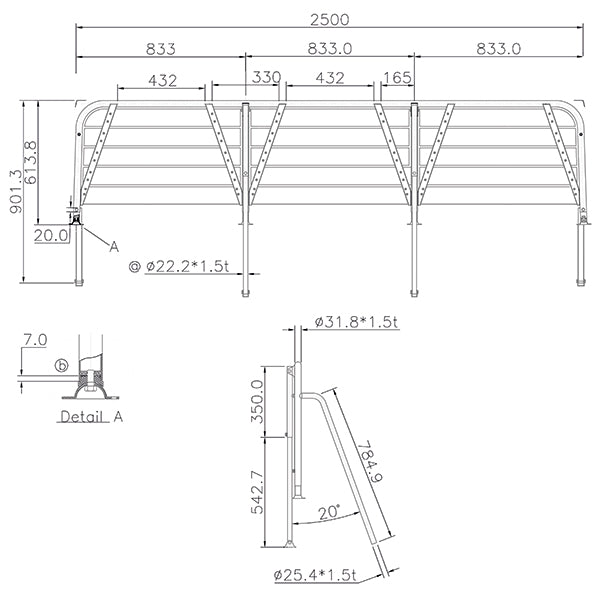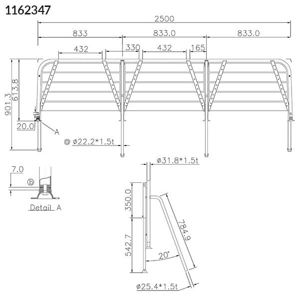 Badeplatform L-250cm D-60cm Ø32mm AISI 316 Teak, inkl. universalbeslag