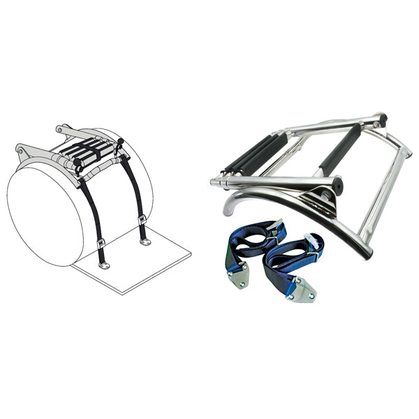 Stigen er designet til at passe til gummibådspontoner med en diameter på op til 40 cm. Den har tre teleskoptrin, der gør det muligt at justere højden efter behov. Med de medfølgende bånd og rustfrie spænder kan stigen nemt monteres og sikres på din båd.
