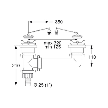 Barka, Bundfitting dobbelt afløb 125-320 mm, Ø 25 mm