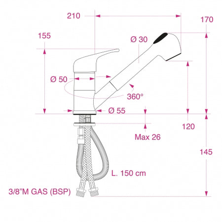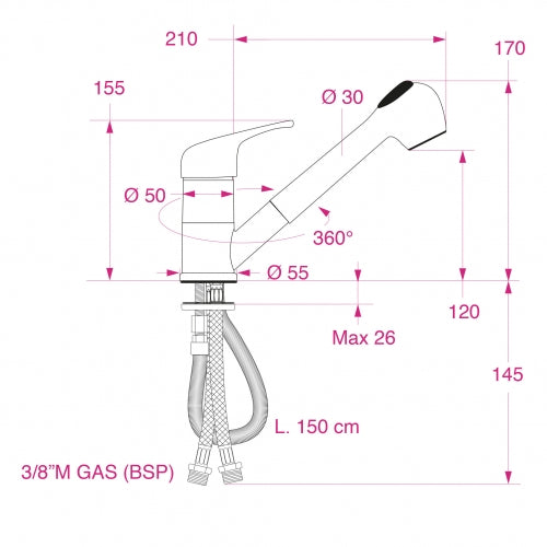 - Bruser: Pull-out med justerbar stråle