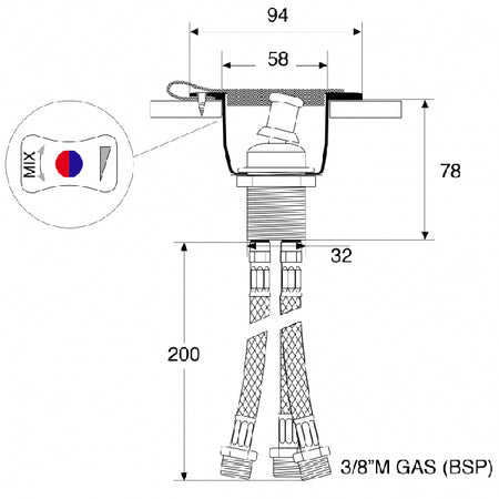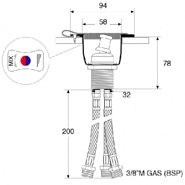 Barka Stophane/blandingsbatteri er designet med fokus på kvalitet og funktionalitet. Det er ideelt til både nye installationer og som en opgradering af eksisterende armaturer. Med et hulmål på 58 mm passer det til de fleste standard installationer, og det BSP 3/8" gevind sikrer en sikker og tæt forbindelse.