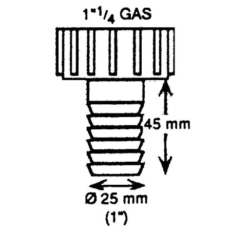 Barka, Studs lige 1", 1 1/4" gevind, 25 mm slange