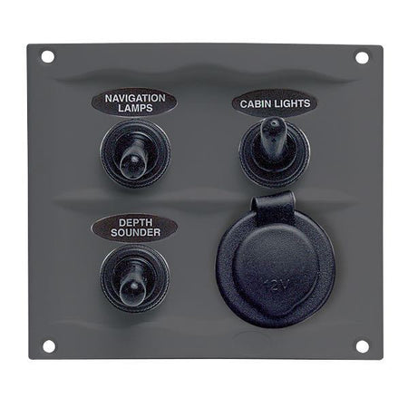 BEP, Stænktæt el-panel med 3 kontakter og el-udtag, 12V, IP56, 95 x 107 mm