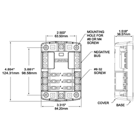 Blue Sea, Sikringsholder til 6 ATO/ATC sikringer med minus skinne, 30 A, 100 A, 84,2 mm x 124,3 mm