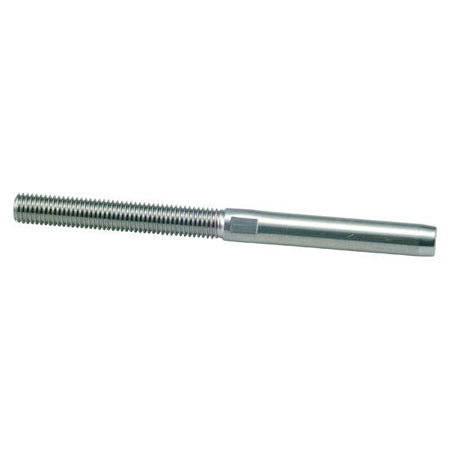 Terminalen er fremstillet af rustfrit stål, hvilket sikrer en høj holdbarhed og modstandsdygtighed over for vejrpåvirkninger. Den er perfekt til anvendelse i både, hvor stabilitet er afgørende, og kan bruges til at spænde en mast fast i stage, hvilket bidrager til bådens samlede sikkerhed.