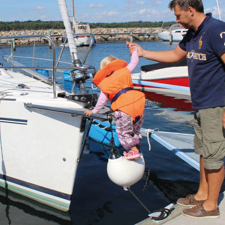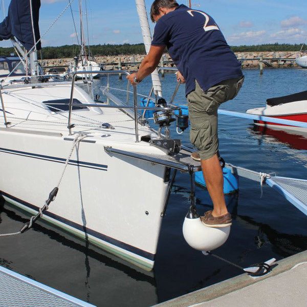 Fenderstep fra Dan-Fender kombinerer funktionalitet og sikkerhed, når du har brug for et ekstra trin til at komme ombord på din båd. Denne unikke fender fungerer både som beskyttelse og trin, hvilket gør det lettere at stige til eller fra skibet.