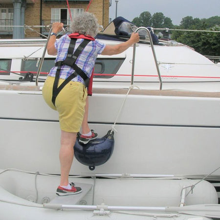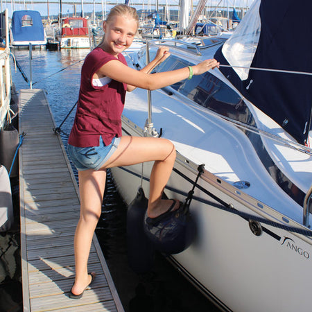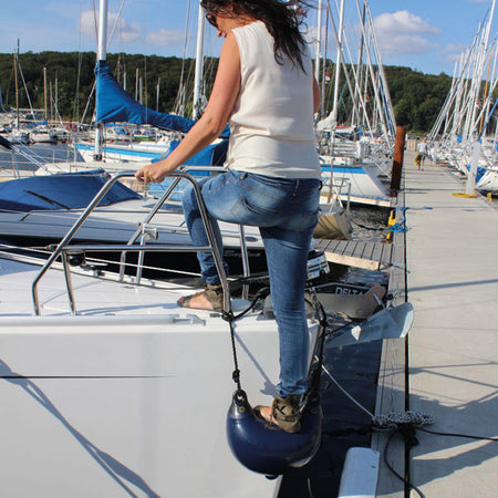 Oplev den praktiske kombination af sikkerhed og funktionalitet med Dan-Fenders stævn- og stepfender i marineblå. Denne fender er ikke kun designet til at beskytte din båd, men fungerer også som et ekstra trin, når du skal stige til eller fra båden.