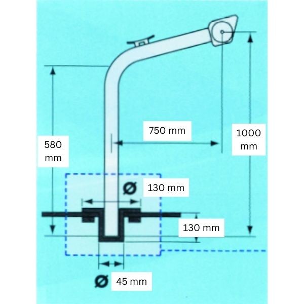 David til joller RF stål max 85kg, 2stk, 1000x750mm, Ø40mm