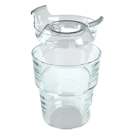 Glasene er fremstillet af 100% polycarbonat, hvilket gør dem brudsikre og i stand til at modstå temperaturer op til 100 °C. Det diskrete design med et åbent låg giver dig mulighed for at dufte og se din drik, samtidig med at det holder indholdet sikkert.