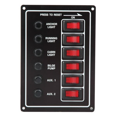 El-panel 6 kontakter med termosikringer 12V, 115 mm x 165 mm