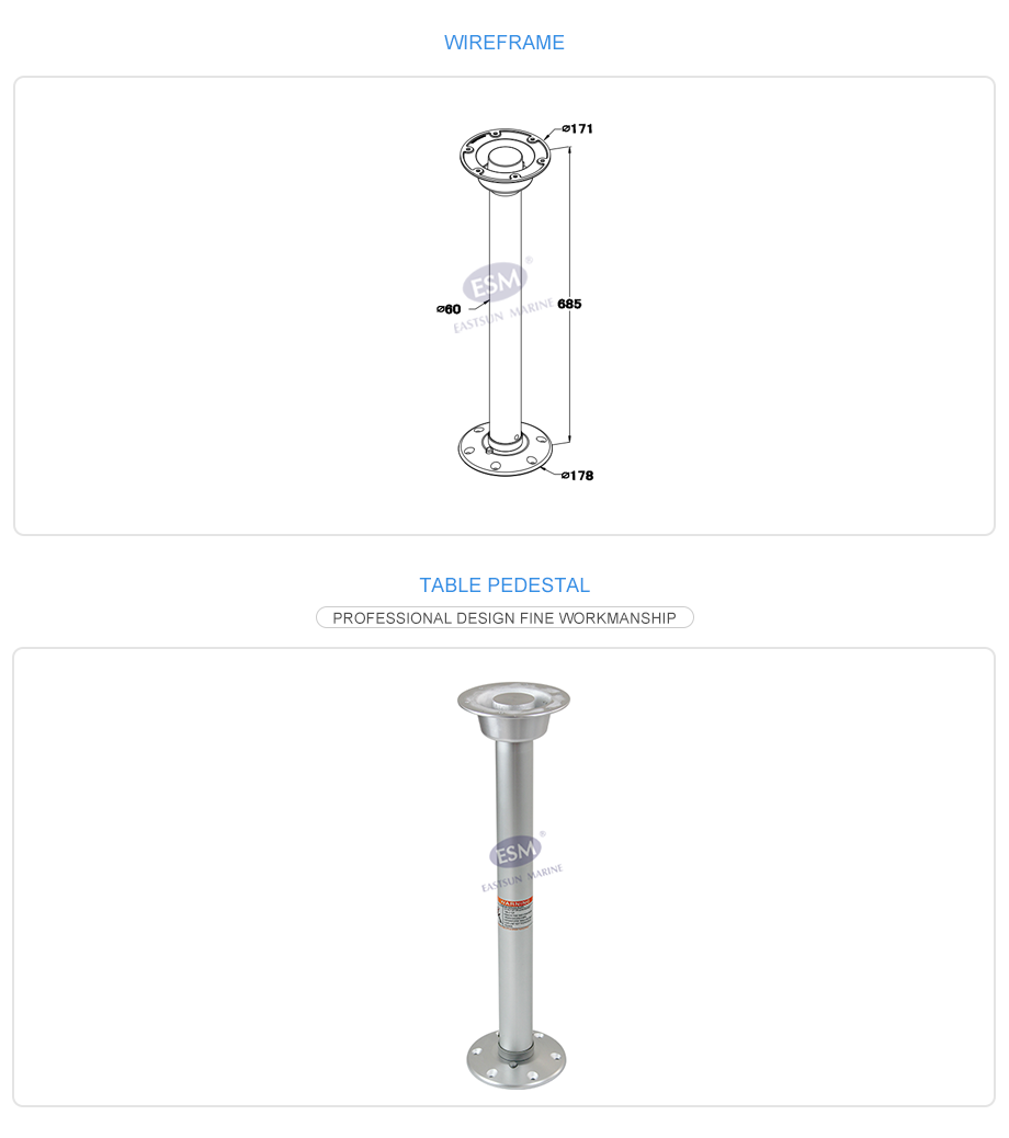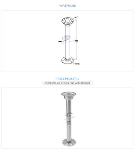 ESM, Bordsøjle BSF70 flytbar, H:685 mm, 360º rotation, Ø: 60 mm, Base Ø: 178 mm