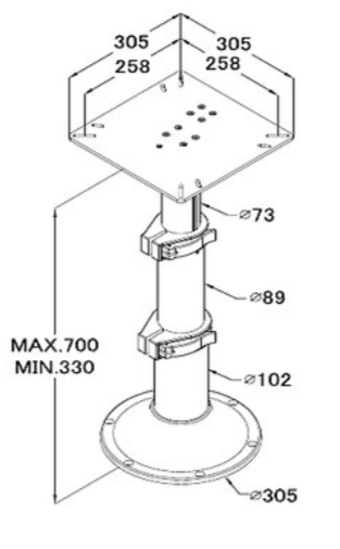 Den unikke kabelaktiverede 3-trins gasdrevet mekanisme gør det nemt at justere højden fra 33 cm til 70 cm, hvilket gør den ideel til både sengestøtte og bordsokkel. Fremstillet af håndpoleret anodiseret marinekvalitets aluminium, sikrer denne bordsøjle både holdbarhed og et stilrent udseende.