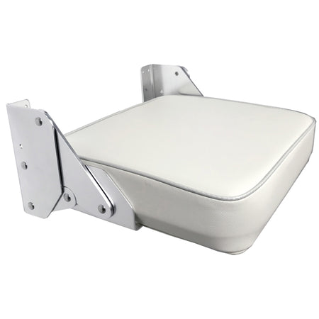 ESM klapsæde i hvid/lysegrå kombinerer funktionalitet med et moderne design, der passer ind i enhver indretning. Med et robust rustfrit stålbeslag sikrer dette klapsæde både holdbarhed og stabilitet, hvilket gør det ideelt til både indendørs og udendørs brug.