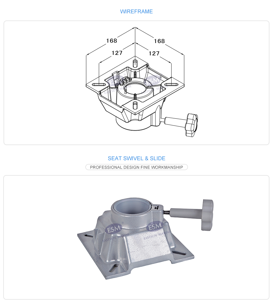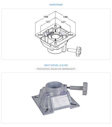 Topbasen med svirvel fra ESM er den ideelle løsning til at sikre en stabil og funktionel oplevelse med dine stolekonsoller. Med en diameter på 2 7/8" (73 mm) er denne topbase designet til at passe perfekt til ESM stole, hvilket gør den til et uundgåeligt valg for både privat- og erhvervsbrug.