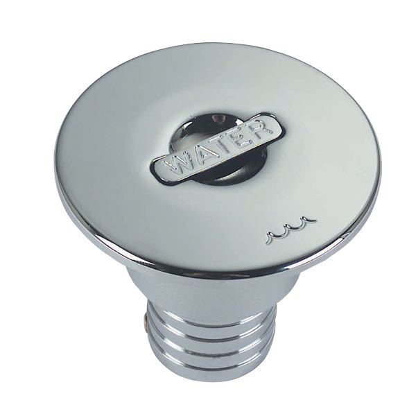 Dækspåfyldningen er udstyret med et vandafvisende låg i rustfrit stål, der let kan åbnes med fingrene uden behov for værktøj. Den forkromede messingunderdel sikrer holdbarhed og modstandsdygtighed over for korrosion, hvilket er ideelt til maritime miljøer.