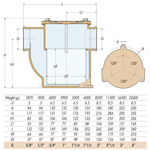 Dette Guidi vandfilter i bronze med 3/4" tilslutning er designet til at beskytte dit vandsystem mod urenheder og partikler. Filteret har et transparent låg, der gør det nemt at inspicere filteret og afgøre, hvornår det skal renses. Den robuste bronzekonstruktion sikrer lang holdbarhed selv i maritime miljøer.