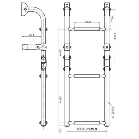 Højglanspoleret badestige 3-trins (2+1) Rustfrit Stål, 220 mm