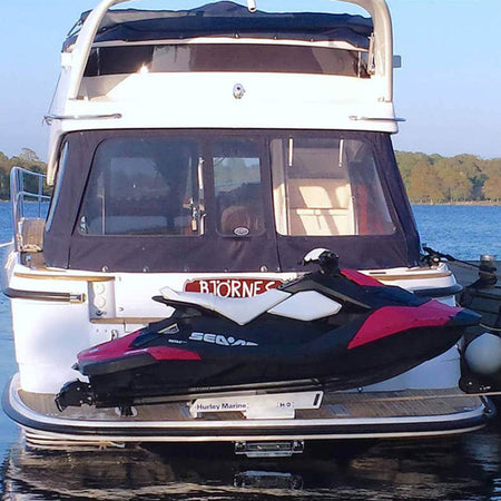 Hurley H3O er en avanceret davit med manual spil, der er designet til at gøre det nemt at håndtere både og vandscootere op til 180 kg. Uanset om du bruger den på badeplatformen eller på en lavere badebro, tilbyder H3O en sikker og stabil løsning til opbevaring og søsætning af dit fartøj.