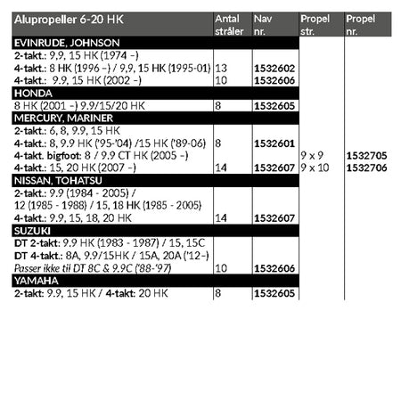 - SUZUKI: DT 2-takt: 9.9 HK (1983 - 1987), 15, 15C, DT 4-takt: 8A, 9.9/15HK, 15A, 20A (’12–) - Passer ikke til DT 8C & 9.9C (‘88-‘97)
