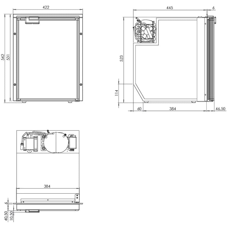 Med den kraftfulde men strømbesparende Danfoss/Secop kompressor bruger Cruise Classic 49 minimal energi fra bådens 12V eller 24V system. Dette gør køleskabet til en ideel løsning for både, hvor strømforbruget er en vigtig faktor, uden at gå på kompromis med køleevnen.