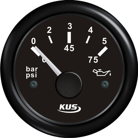 Kus, Olietryksmåler 0-5bar, sort, Ø 52mm, IP67, 12/24V