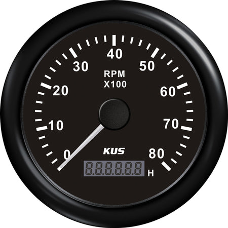 Kus, Omdrejningstæller Benzin, Sort, 0-8000 RPM, 12/24V, IP67