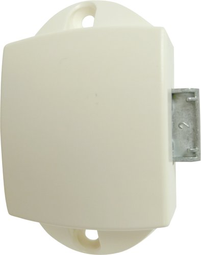 Opdag den praktiske låsekasse i hvid plast, der er ideel til brug sammen med en roset eller knop som tryklås. Denne låsekasse sikrer en pålidelig låsemekanisme, hvor riglen låser, når knoppen trykkes ind, og giver et godt håndtag, når knoppen trykkes ud for at åbne.
