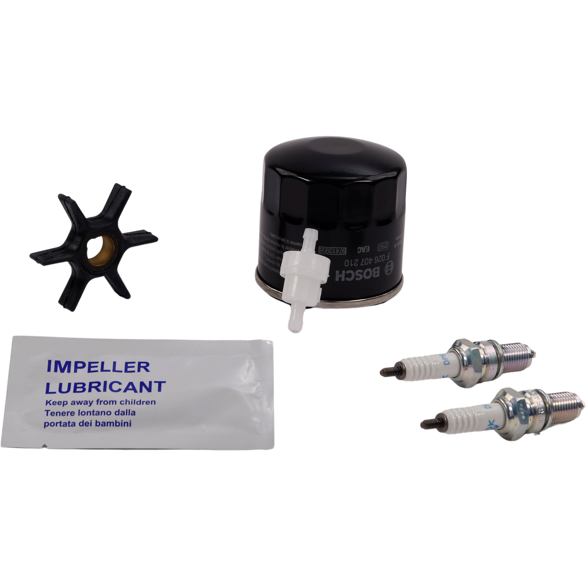 SeaTec, Mercury Servicekit 8 & 9,9HK (323cc) - Oliefilter, Brændstoffilter, Tændrør, Impeller