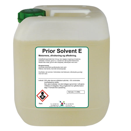 Motorskrubbe / Koldaffedter Prior Solvent E er den ideelle løsning til rengøring af maskiner og værktøj, der er forurenet med olie og fedt. Denne kraftfulde affedter opløser effektivt olie, fedt, voks og bitumen, hvilket gør det nemt at fjerne selv de mest genstridige forureninger. Den er også velegnet til afrensning af beskyttelsesolier og afvoksning af nye køretøjer.