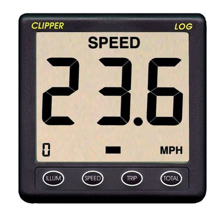 Clipper loggen leveres komplet med alt nødvendigt tilbehør, herunder skrog gennemføring, 7 meter kabel, udtagelig transducer og blændprop. Den er vandtæt og har en baggrundsbelysning, der gør den let at aflæse under forskellige lysforhold.