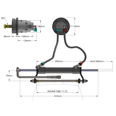 Dette hydrauliske styringssæt er ideelt til påhængsmotorer op til 120 HK. Med en brugervenlig installation og høj ydeevne sikrer det en glidende og præcis kontrol af din båd, så du kan nyde dine sejlture uden bekymringer.