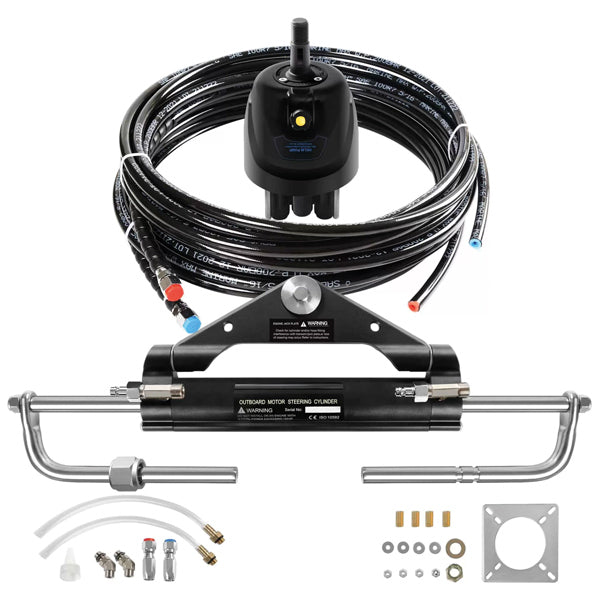 Styringspakken leverer jævn og præcis kontrol, hvilket gør bådhåndtering markant lettere. Den kompakte styrepumpe med indbygget to-vejs låseventil eliminerer tilbageslagstorsion, så du får en sikker og behagelig sejloplevelse selv under udfordrende forhold. Systemets nylon-hurtigkoblinger gør installation og vedligeholdelse enkel.