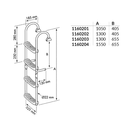 Nuova Rade, Snekke badestige, 6 trin (3+3), AISI 316 rustfrit stål, Justerbar fod